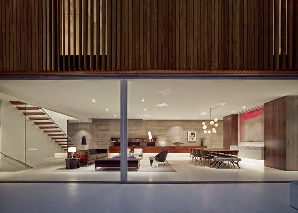 Concrete, Glass and Wood, make up this elegant contemporary home with clean lines and soft landscaping designed by Fleetwood/Fernadez.